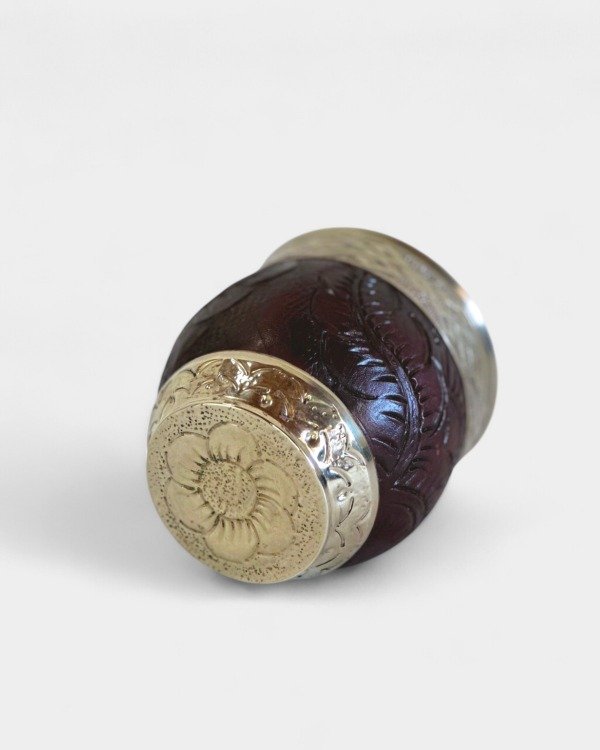 ⚜️ Imperial Roma de Alpaca, calabaza forrada con cuero labrado y base de alpaca cincelada.